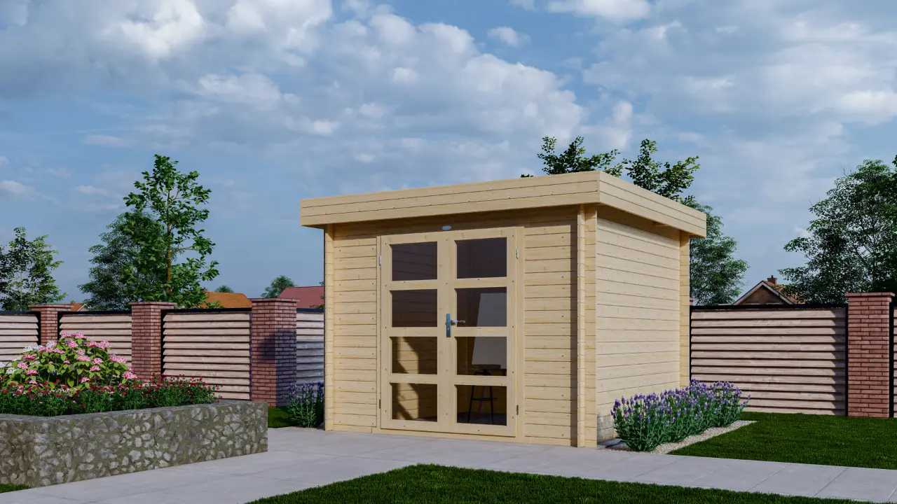 De Blokhut 330M biedt een strakke en moderne toevoeging aan elke tuin, met zijn afmetingen van 280 x 280 x 228 cm. Deze blokhut is ideaal voor het opbergen van tuinspullen, gereedschap, en fietsen. Gemaakt van hoogwaardig Noord-Europees vurenhout, heeft de blokhut een wanddikte van 28 mm en wordt standaard geleverd met enkelglas en verstelbare scharnieren voor optimaal gebruiksgemak.